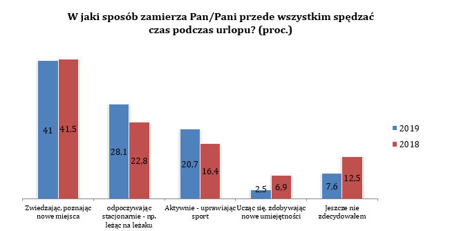Rok temu to kobiety były bardziej aktywne i to znacząco. 48 proc. pań chciała zwiedzać i poznawać nowe miejsca, a 20 proc. planowała uprawiać sport. Stacjonarny odpoczynek wybierało tylko 17 proc.