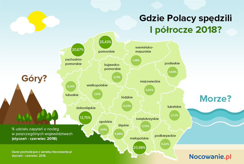 Portal nocowanie.pl, sprawdził, gdzie Polacy podróżowali w pierwszym półroczu 2018 roku. Sprawdź gdzie Polacy podróżowali najczęściej w pierwszym półroczu.