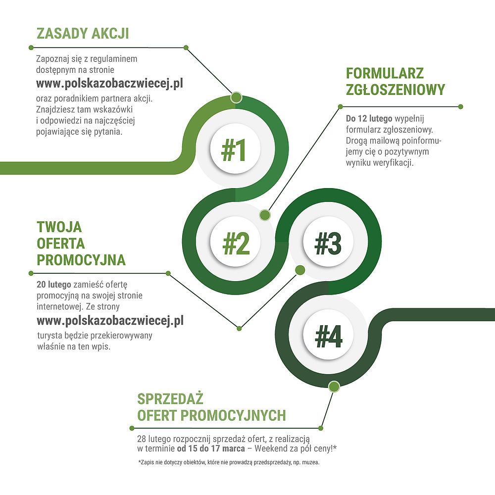 Do 12 lutego hotelarze, gestorzy atrakcji turystycznych, restauratorzy, organizacje i instytucje związane z obsługą ruchu turystycznego, mogą składać deklaracje udziału w VI edycji akcji „POLSKA ZOBACZ WIĘCEJ – WEEKEND ZA PÓŁ CENY”. Formularze zgłoszeniowe umieszczone są pod adresem internetowym www.polskazobaczwiecej.pl