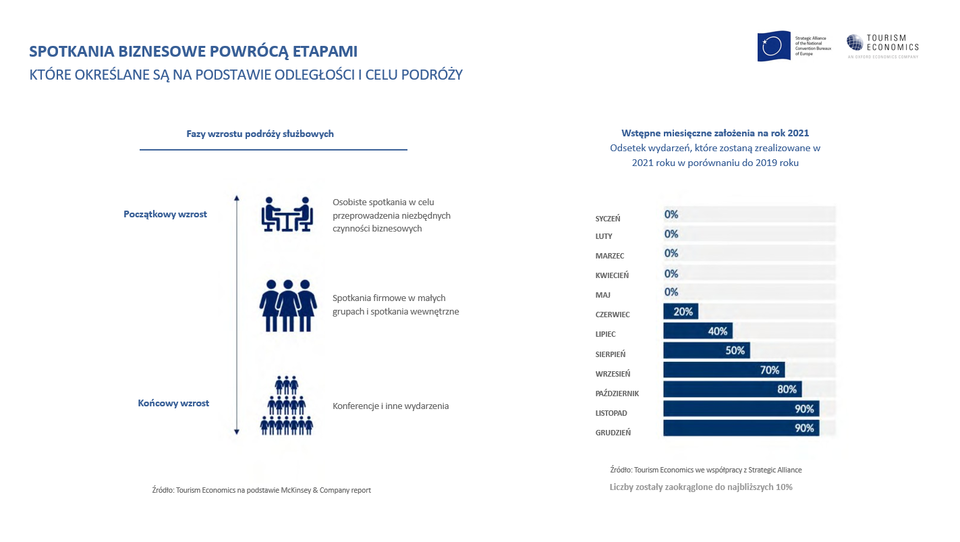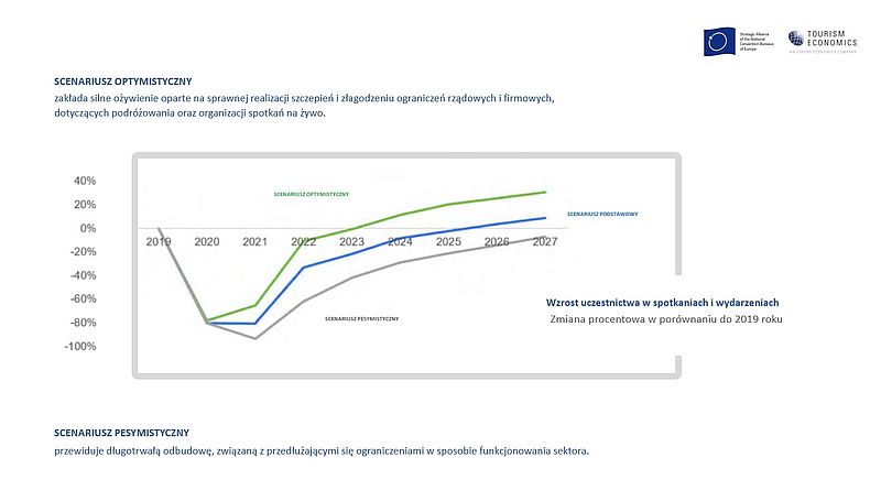 11 maja 2021 r. Strategiczny Sojusz Narodowych Europejskich Convention Bureaux opublikował aktualizację swojego badania z 2020 roku pt.: „Wpływ koronawirusa na europejski sektor spotkań”. Raport przygotowany przez Tourism Economics przedstawia trzy scenariusze ożywienia, odzwierciedlające możliwe zmiany związane z poziomem rozwoju sytuacji pandemicznej.